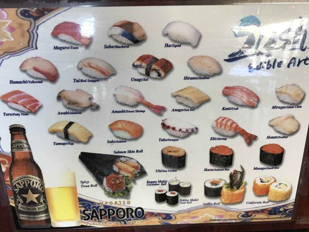 Ca roll. Tuna, salmon, yellowtail, unagi, ebi, avocado, tobiko, onion (s).